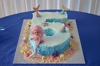 | How good is that mermaid tail? Jen made that one. The little girls made one each too but we couldn't put them on the cake. They didn't pass my quality control. They did go on some cupcakes though. |